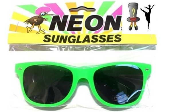 Includes plastic neon pink sunglasses –