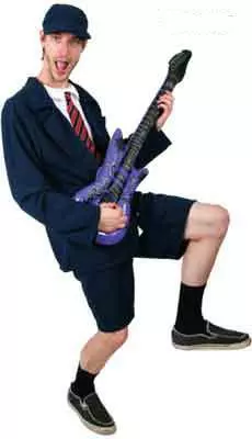 Includes – hat jacket attached tie shorts and inflatable guitar – not