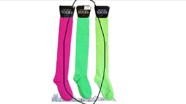Includes – nylon polyster long boot neon socks –