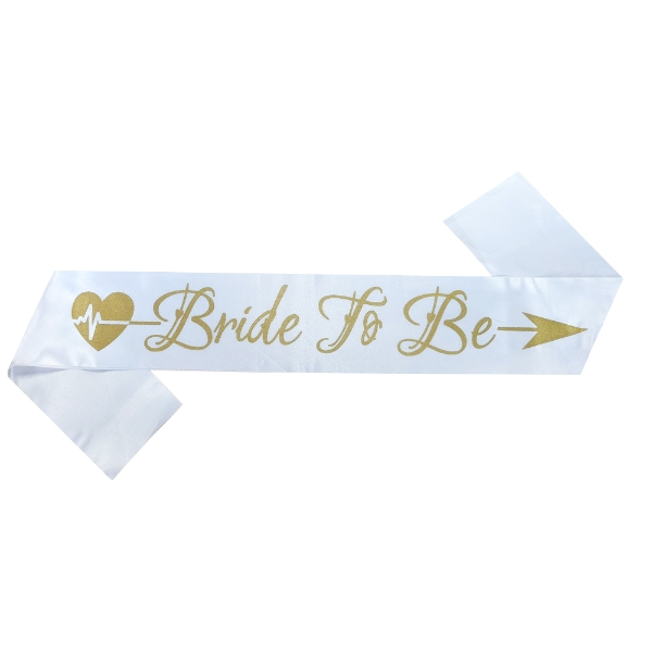 Includes – white sash with gold bride to be –