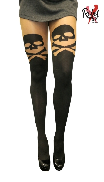 Includes skull printed thigh high stockings –