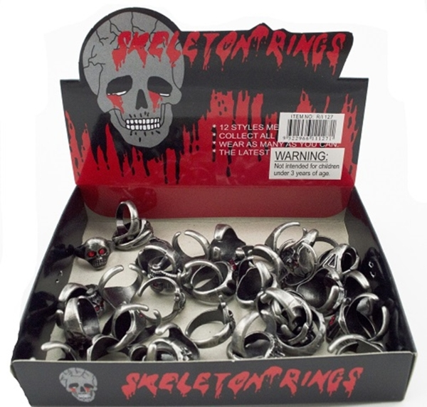 Includes silver skeleton ring with eyes